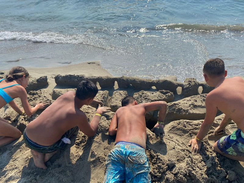 Ad agosto è arrivato il momento della vacanza più lunga al mare. Molti dei nostri bambini vivevano questa esperienza per la prima volta, e si sono stupiti e meravigliati di poter giocare sia in spiaggia che in piscina, di poter cantare e ballare mostrando i propri talenti grazie all’animazione della struttura che ci ospitava e di potersi esibire (facendo anche una vera e propria sfilata) davanti a tante persone in festa. Una sera hanno voluto persino preparare e mettere in scena uno spettacolo per tutto il villaggio… e che spettacolo poi la notte in spiaggia a vedere le stelle!”